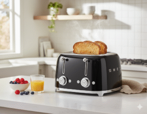 Smeg’s TSF01 blends vintage charm with modern function. Its curves add fun to kitchens.